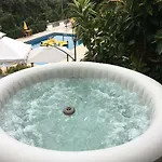 Die Unterkunft mit Blick auf den Garten ist mit einem privaten Bad und Parkettböden ausgestattet. Zur Ausstattung des Badezimmers gehören eine getrennte Toilette und eine Dusche sowie ein Haartrockner und Badelaken.